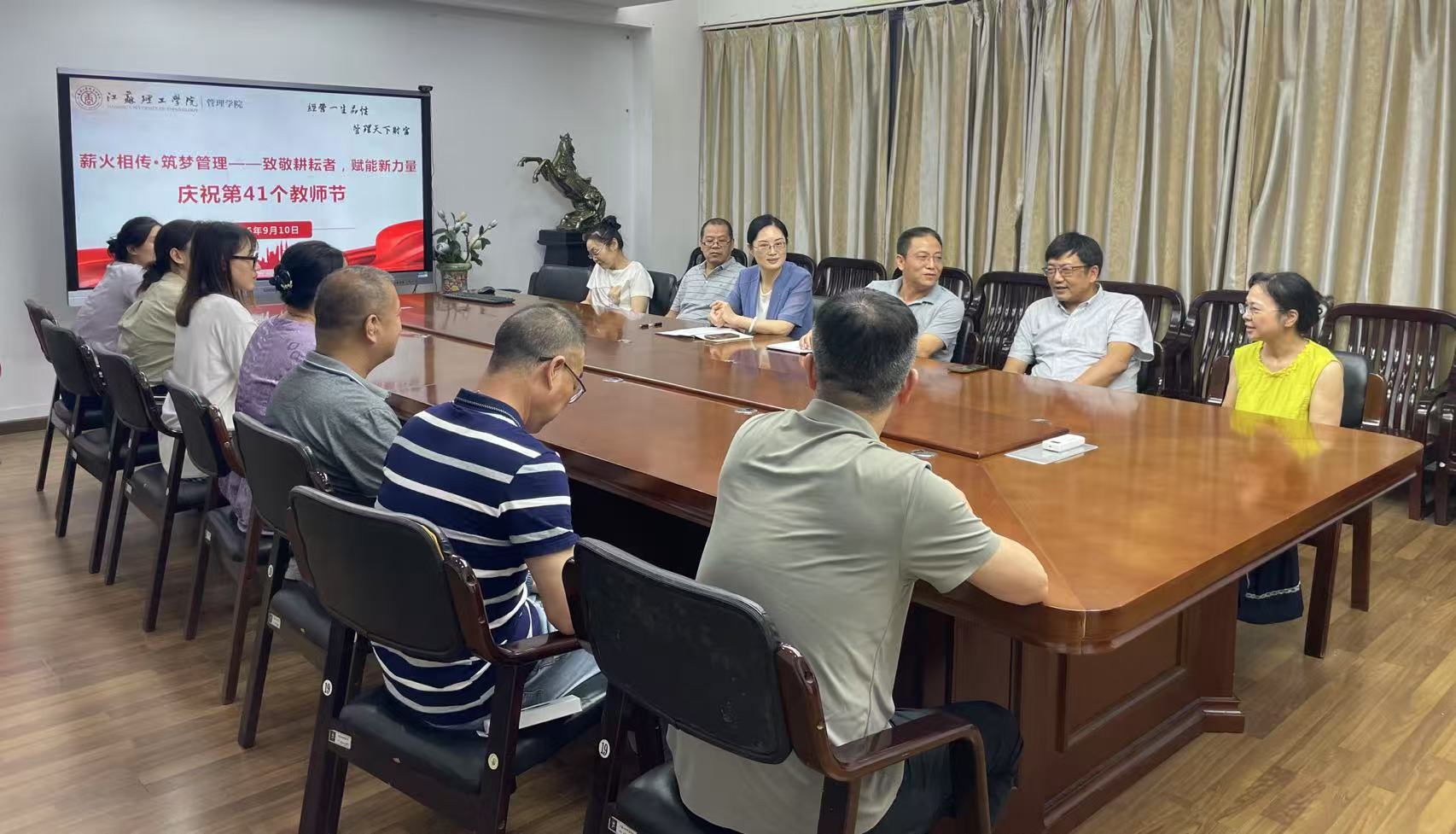 秋高气爽,桃李芬芳。9月10日下午,管理学院在2号楼211会议室召开“薪火相传・筑梦管理——致敬耕耘者,赋能新力量”庆祝第41个教师节主题座谈会。学院党委书记谢芳、副院长(主持工作)袁奋强、从教满30年教师及新入职青年教师共同参会。座谈会由谢芳书记主持。