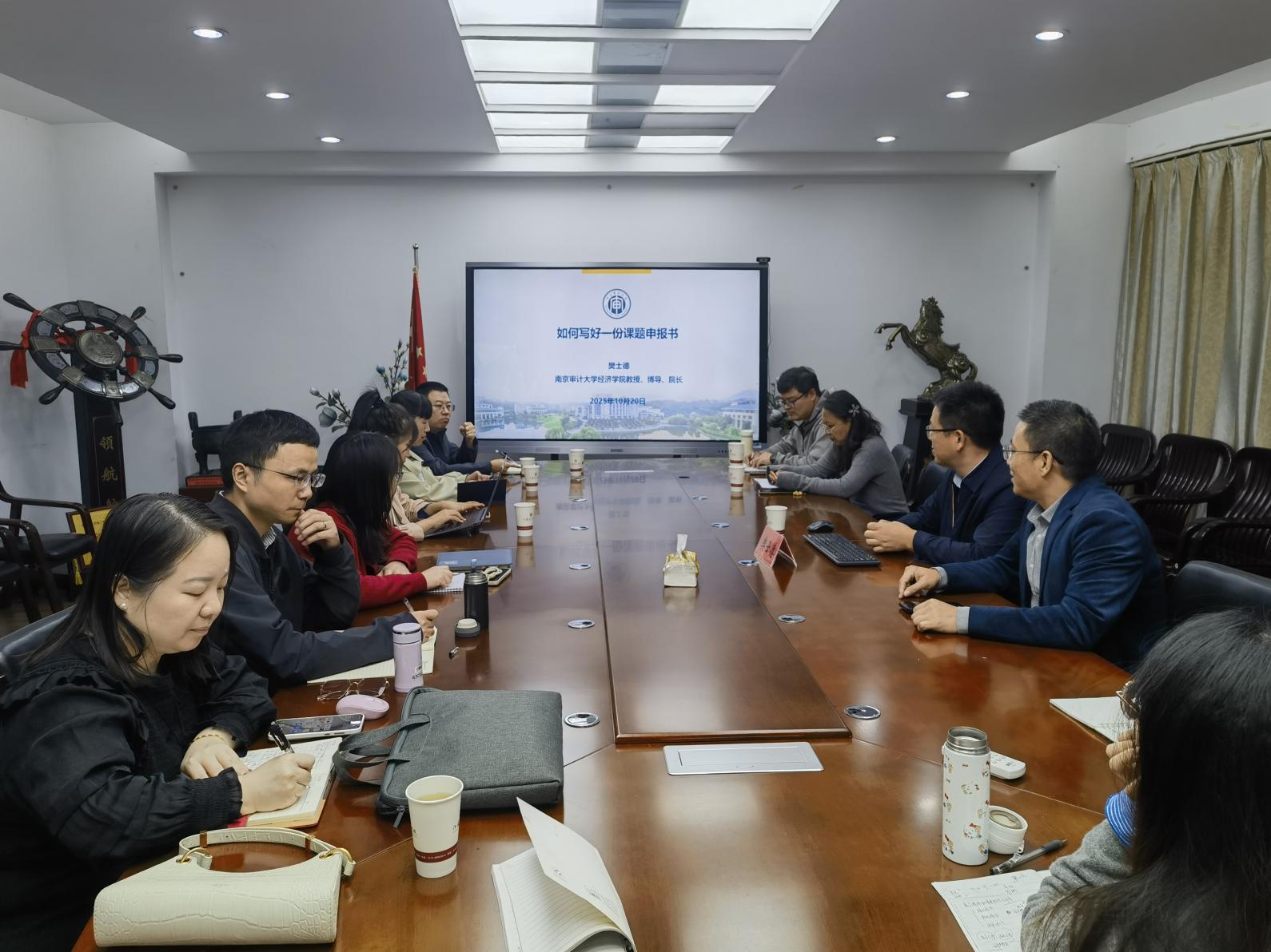 2025年10月20日下午,江苏理工学院管理学院“管理大讲堂”第三期在学院211会议室如期举行。本期讲座特邀南京审计大学经济学院院长、博士生导师樊士德教授担任主讲嘉宾,作题为“如何写好一份国家级项目申请书”的专题报告。讲座由管理学院党委副书记、副院长(主持工作)袁奋强主持,学院骨干教师、青年教师共同聆听了本次报告。