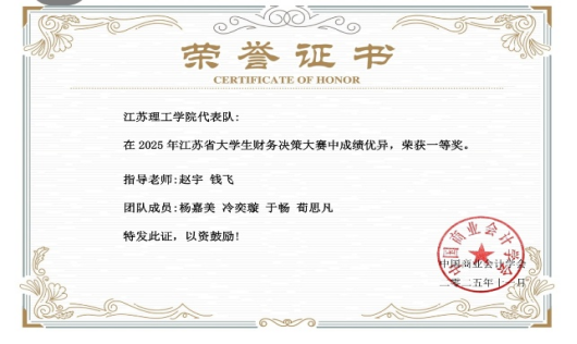 管理学院代表队荣获2025年江苏省大学生财务决策大赛一等奖