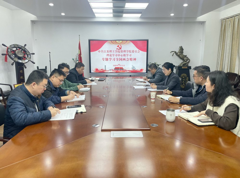 311日下午,管理学院党委理论学习中心组在2号楼211会议室召开专题学习会,深入学习贯彻2026年全国两会精神。会议由学院党委书记谢芳主持,学院党委理论学习中心组成员参加学习